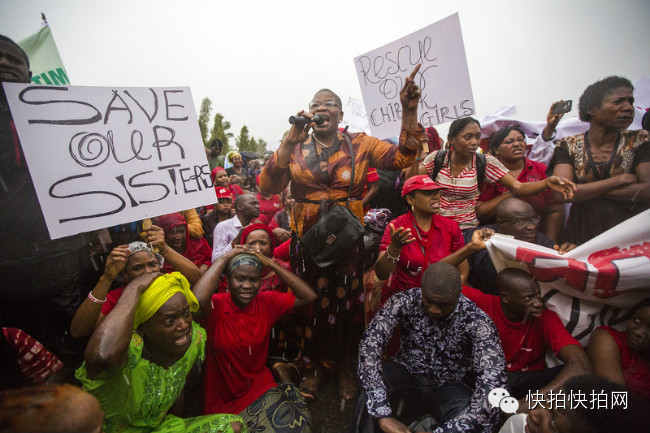 5月1日,尼日利亚的妇女们为200个被绑架的小女孩上街游行示威。在4月15日午夜,234名小女孩被伊斯兰组织绑架。 Tom Saater for BuzzFeed News