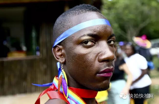 8月9日,乌干达,一名把自己装扮得漂漂亮亮的男士,准备上街庆祝法庭废除了反同性恋法。AStringer . / Reuters