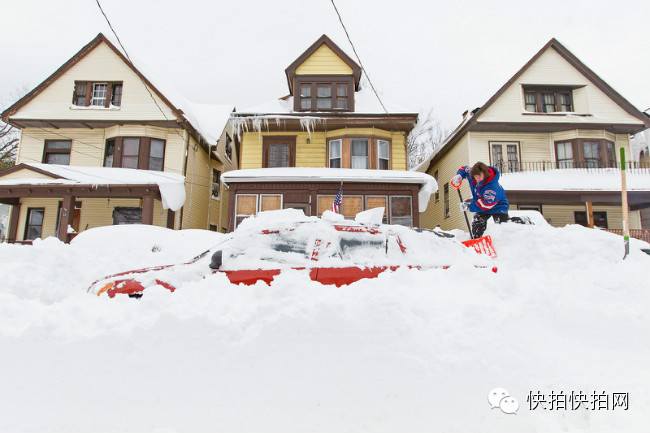 11月20日,美国水牛城,一场秋季大雪之后,Lori Weishaar正在为她的车除雪。 Aaron Lynett / Reuters