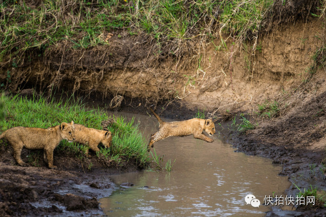 10月20日,摄影师拍到的小狮子跳过小河的一瞬。Paul Goldstein/Exodus/Re/REX USA / Via exodus.co.uk