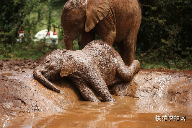 10月15日,肯尼亚内罗毕国家公园,一名大象宝宝在泥潭里懒洋洋的晒太阳。Goran Tomasevic / Reuters