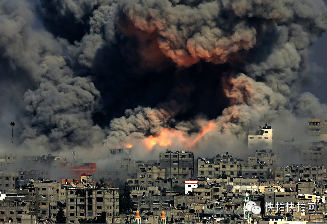 7月29日,以色列空军发动对加沙城的空袭,加沙东区的杜法浓烟四起。Mohammed Saber/EPA