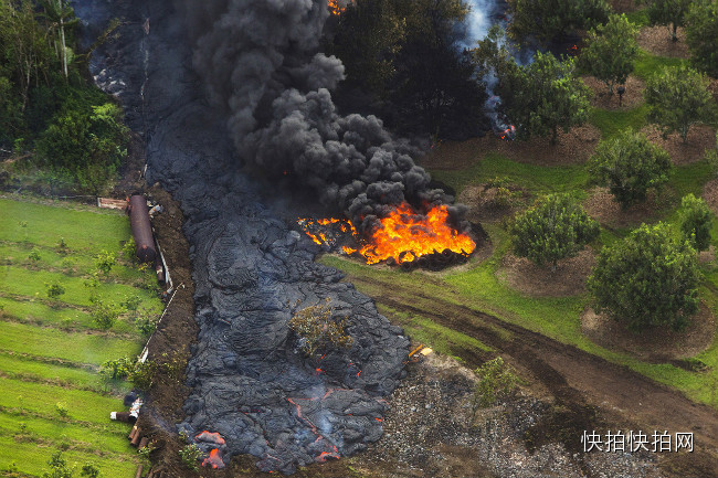 10月28日,夏威夷帕霍亚火山爆发,岩浆正朝着这个有1000人居住的岛流动。Andrew Hara / Getty Images