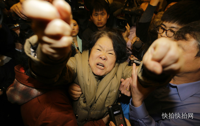 3月24日,北京丽都酒店,MH370乘客家属向一名记者绝望嘶吼。Jason Lee / Reuters
