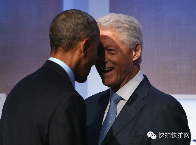9月23日,两人美国总统巴拉克.奥巴马和比尔.克林顿在纽约见面。 John Moore / Getty Images