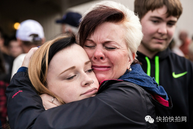 10月24日,美国马里斯维尔的校园枪击案后,母亲Colleen Epstein(右)紧紧拥抱着她的女儿Meaghan Epstein (左)。Wash. Jordan Stead / AP