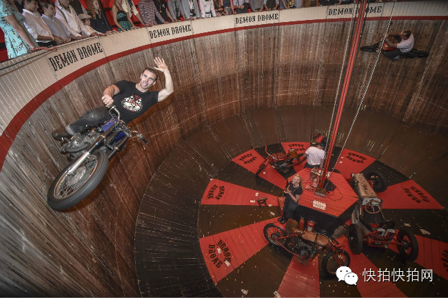 9月13日,Dave Seymour和他的家人在英国这个垂直的“死亡之墙”上进行原创摩托车特技表演。 Rex/REX USA
