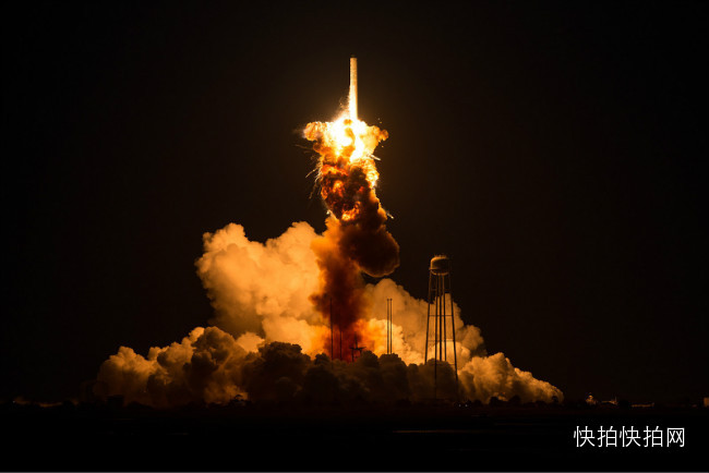10月28日,搭载着天鹅号飞船的安塔瑞斯运载火箭,在夜间升空6秒后爆炸。 NASA / Getty Images