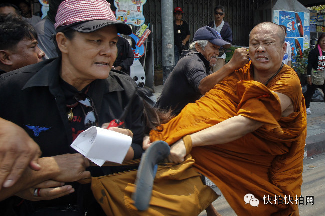 3月24日, 泰国曼谷,在国家反腐败委员会办公室外,红衫军袭击当地的僧人的一瞬间。Chaiwat Subprasom / Reuters