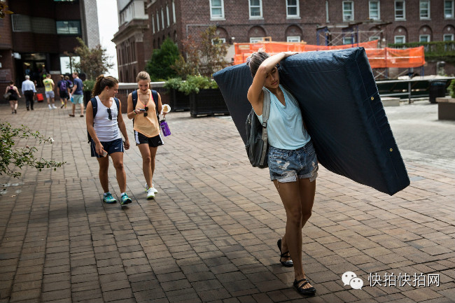 9月5日,美国,哥伦比亚大学视觉艺术系学生Emma Sulkowicz, 拿着一个床垫,抗议学校对她的无视。据报道,她在大学二年级的时候在纽约被强奸。 Andrew Burton / Getty Images