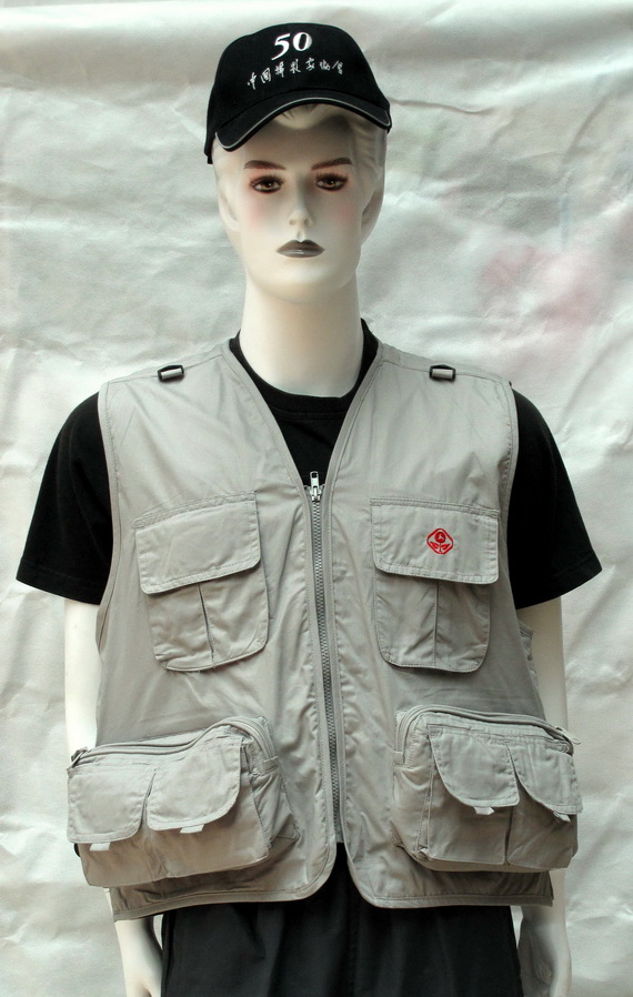 口袋:前面八个,两大六小,前面左上口袋有协会会徽;另有两个里袋;后面一个大口袋。