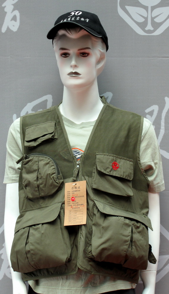 纯棉面料,领、肩加护衬,舒适大方。前面两个大口袋均加护衬,保护设备。三个小口袋,造型不同,设计新颖。后背下方有一个超大口袋。后背里层有一大袋,两小袋,一个笔袋,方便安全。后背标有“中国摄影家协会”字标。